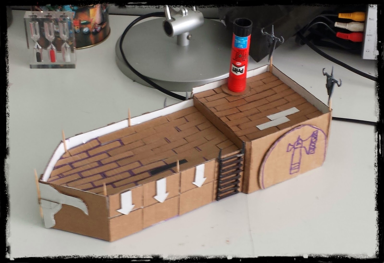 I'm presenting you the ongoing project of the Grindanic (poor traduction of the Italian Tritanic, from the verb "tritare" that means "to grind") the Chaos Dwarf warship that I'll use in my Mordheim Campaign (yes, we have ships). It's mainly built in cardboard, with a lot of vinilic glue to make it more resistant to acrylics.